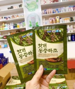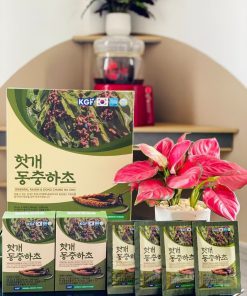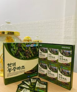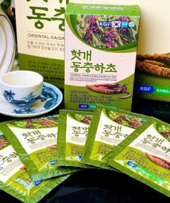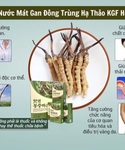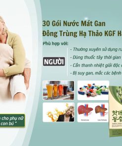 Nước Mát Gan Đông Trùng Hạ Thảo KGF Hàn Quốc (50ml x 30 gói) được chiết xuất từ cây nho khô, đông trùng hạ thảo, táo đỏ, đường hoa quả, acid citric, men cỏ ngọt stevia, nước tinh khiết cùng một số các loại thảo dược quý khác tạo ra sản phẩm với vị ấm hơi đậm, rất dễ dàng tiện lợi sử dụng để bồi bổ sức khoẻ.