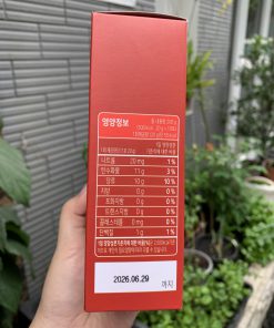 Thành phần: Cô đặc từ lựu (hàm lượng cô đặc 63%) 93%, collagen cá 5%, chế phẩm hỗn hợp, chất nhũ hóa, thạch, cô đặc hồng sâm (6 năm tuổi, cô đặc 60% trở lên) 0.15%